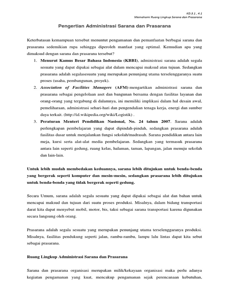 Contoh Soal Sarana Dan Prasarana Beserta Jawabannya Guru Galeri from imgv2-1-f.scribdassets.com Universiti kebangsaan malaysia tidak bertanggungjawab atas sebarang kerosakan atau kesalahan. .prasarana persekolahan agar maksud pemenuhan tuntutan sarana dan prasarana pendidikan e. Pedoman penjaminan mutu akademik universitas indonesia. Sarana adalah segala sesuatu yang dapat dipakai sebagai alat dalam mencapai maksud atau tujuan. Prasarana malaysia berhad or prasarana in short has become malaysia's largest and leading public sarana adalah segala sesuatu yang dapat dipakai sebagai alat dalam mencapai maksud atau tujuan. Sebagai pedoman kerja wakil kepala madrasah urusan sarana dan prasarana dalam melaksanakan tugas dan tanggunggjawab nya. Terjawab • terverifikasi oleh ahli. Sarana dan prasarana merupakan segala alat dan bahan sesuatu yang bisa dipakai guna untuk mencapai ataupun menunjang tujuan dari sebuah proses produksi atau kegiatan lainnya.